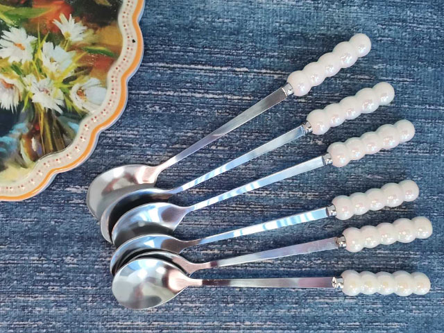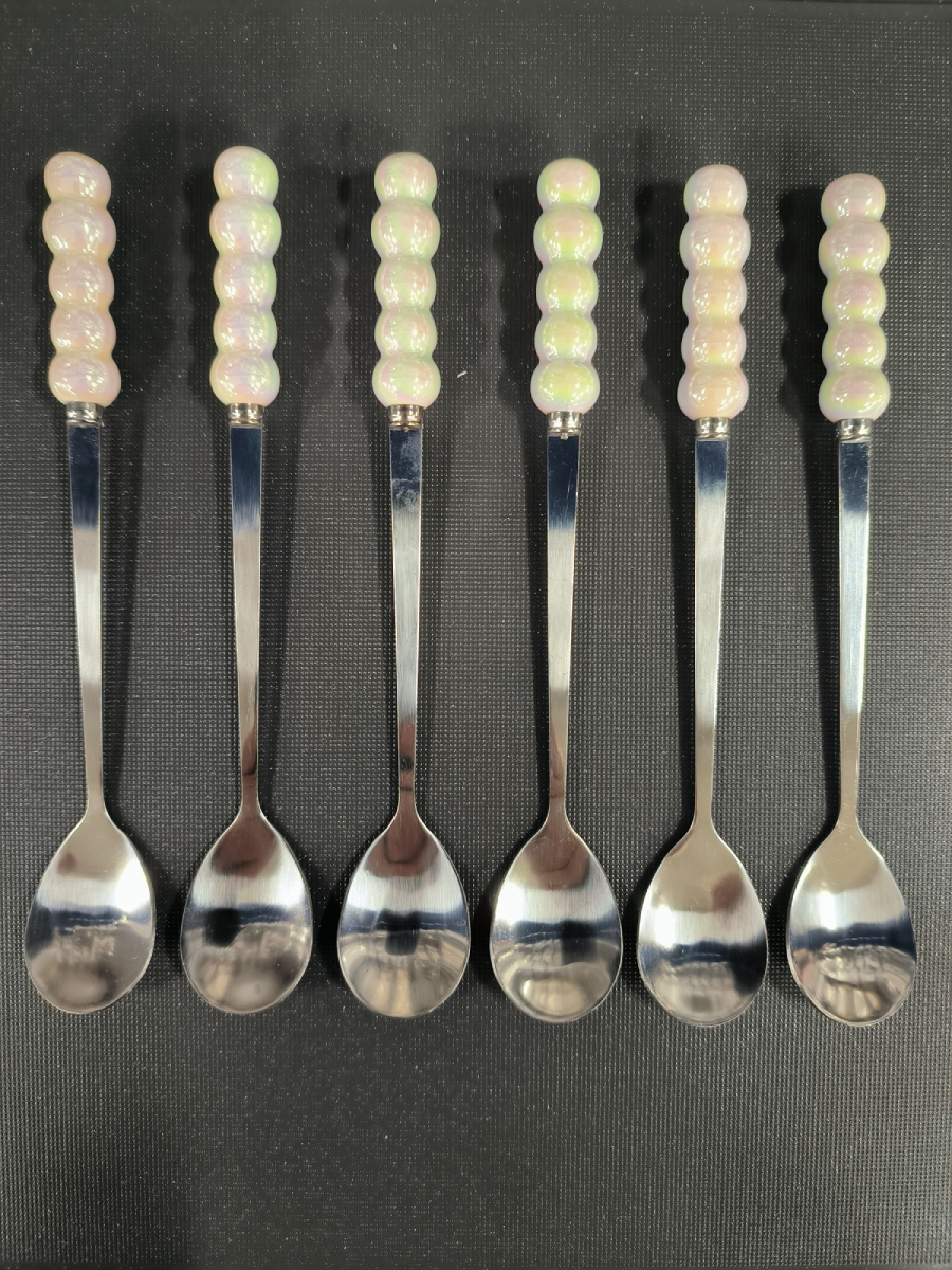 Комплект 6 десертни лъжички с керамични дръжки "Седеф"