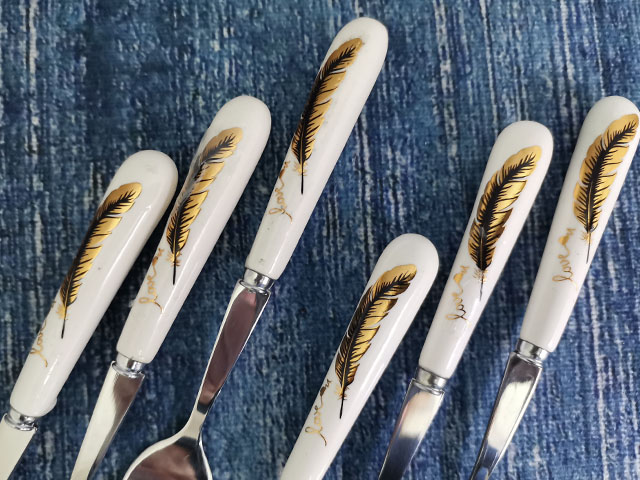 Представяме ви изискания комплект от 6 десертни лъжички с керамични дръжки "Златно Перо", които ще придадат изтънченост и стил на всяка ваша сладка трапеза.