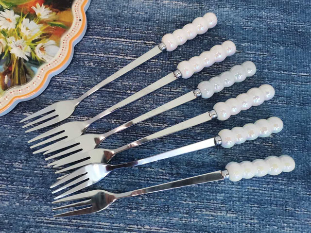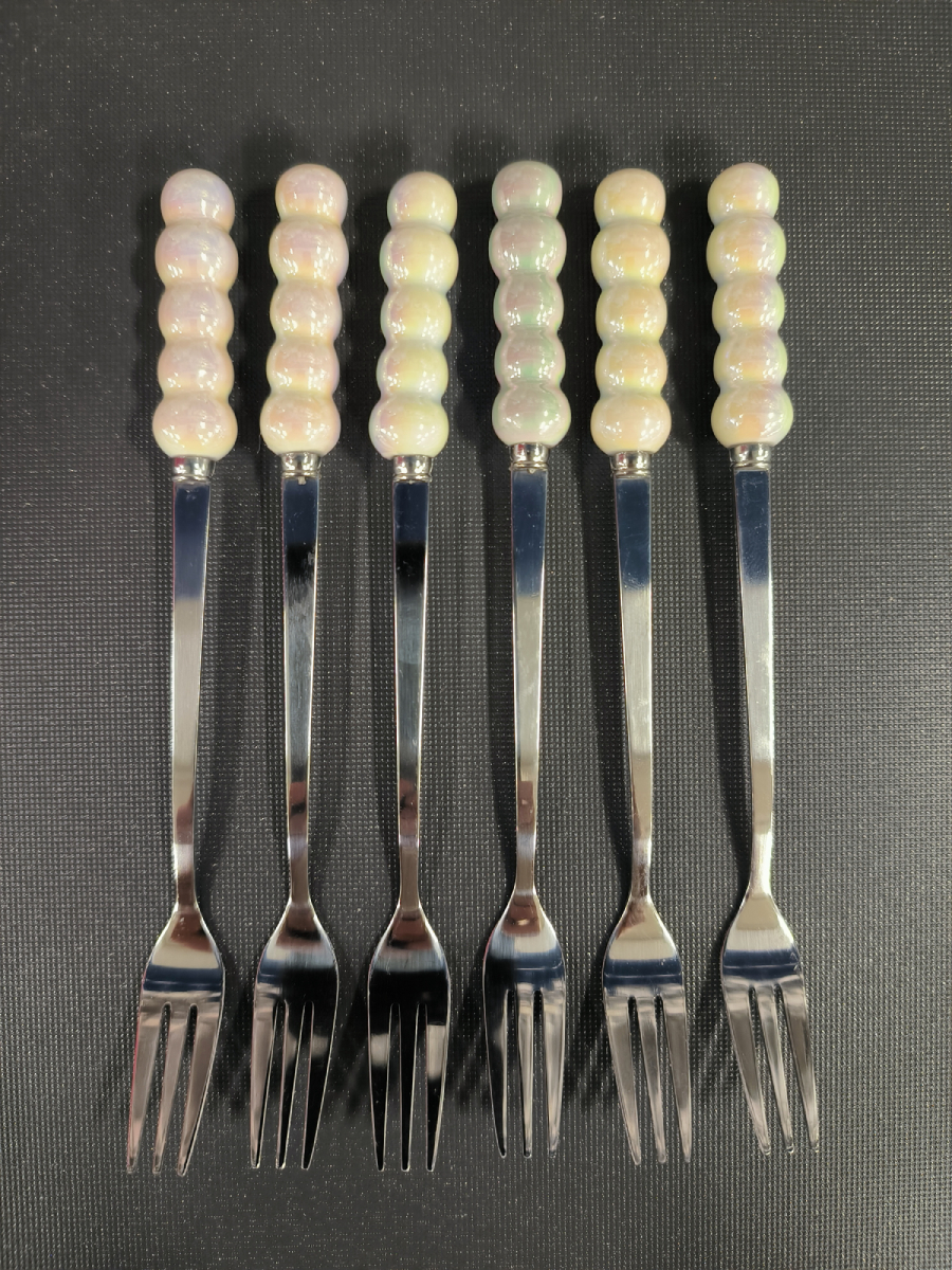 Комплект 6 десертни вилички с керамични дръжки "Седеф"