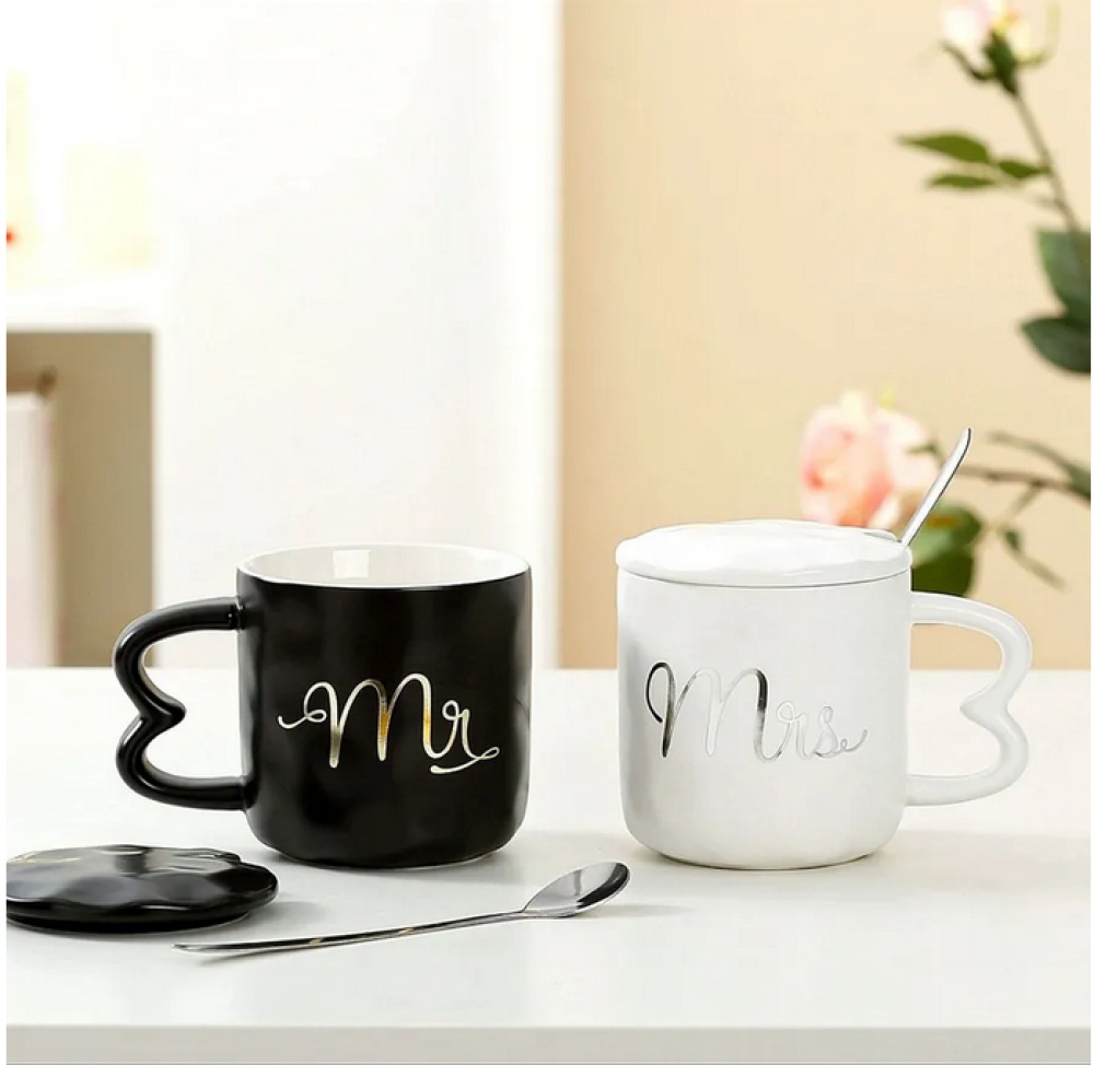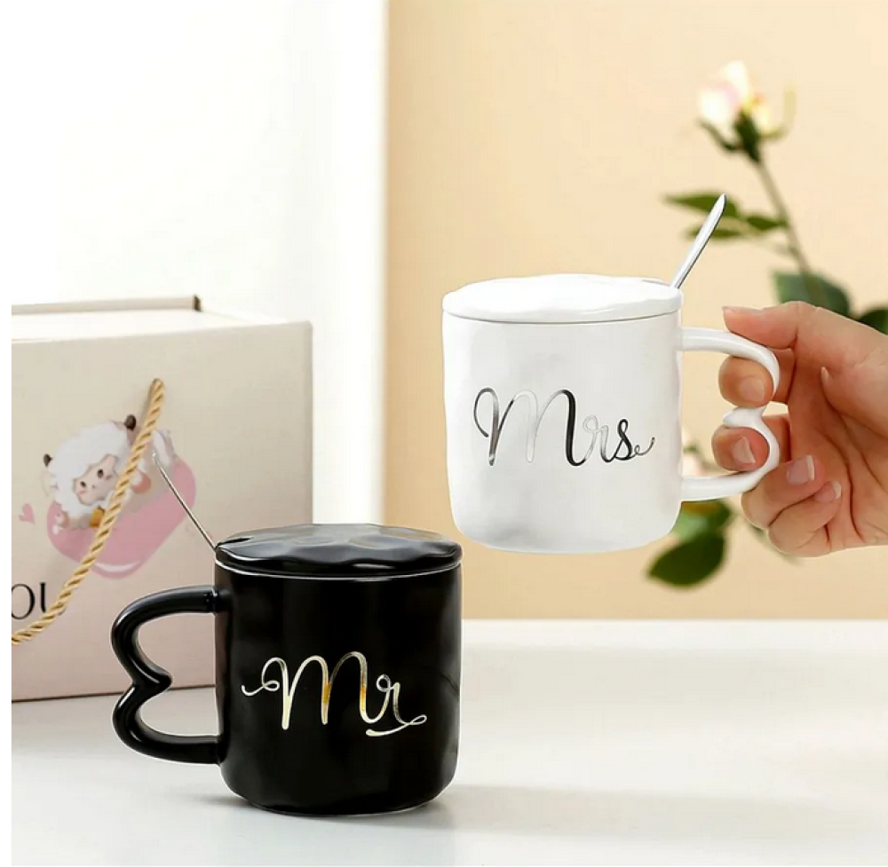 Търсите перфектния подарък за любим човек или близка двойка? Керамичните чаши "Mr" и "Mrs" с капачета и лъжички ще внесат топлина и индивидуалност във всяка сутрин. Елегантният черно-бял дизайн и удобните аксесоари правят комплекта едновременно практичен и стилен.