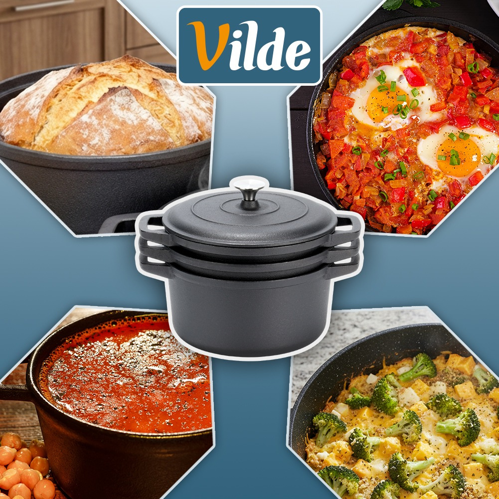 Изберете 3 в 1 чугунен комплект съдове CAST LINE и се насладете на професионални резултати и автентичен вкус във всяко ястие. Поръчайте сега и оборудвайте кухнята си с надеждно и дълготрайно решение!
