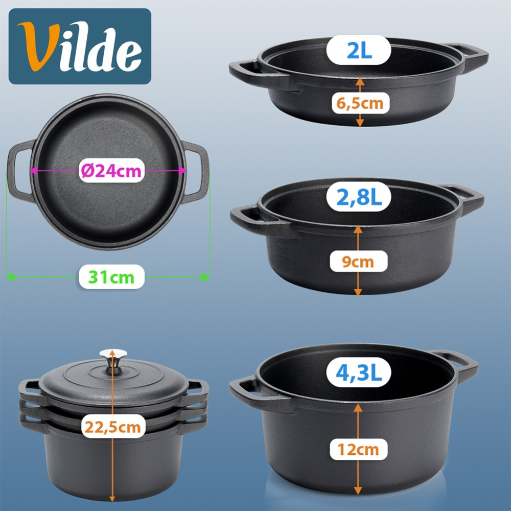 Комплект чугунени съдове с капак 3 в 1 Ø24 см