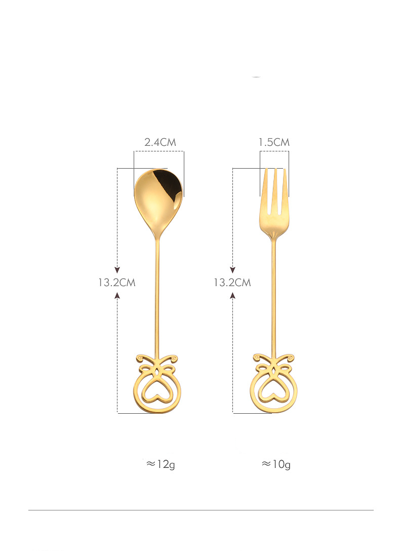 Изработени от висококачествена неръждаема стомана 304 в стилозен златист цвят, тези прибори са перфектни за всяка сладка наслада.