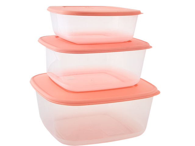 Комплект от три квадратни контейнера за хранителни продукти с размер 22х22х10 см. и с обем 3 л.