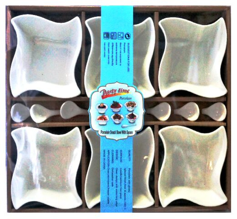 Този комплект купички с лъжички съчетава функционалност и изискан стил. Порцелановият материал осигурява здравина, гладка повърхност и лесно почистване, което го прави подходящ както за ежедневна употреба, така и за специални поводи.