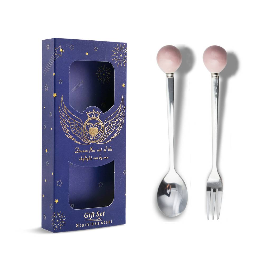 Комплект лъжичка и виличка "Pink Ball" в подаръчна кутия