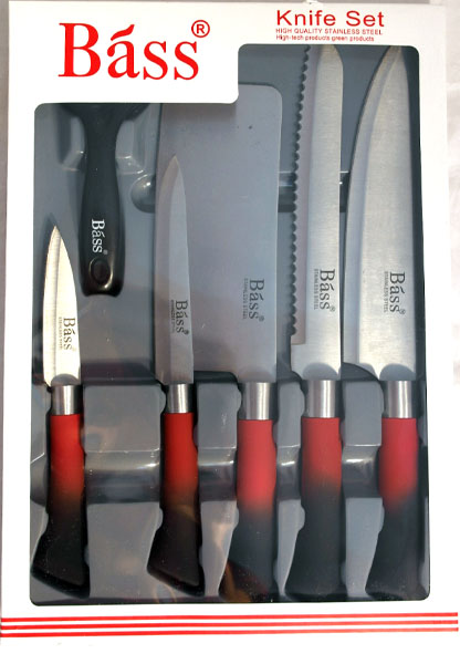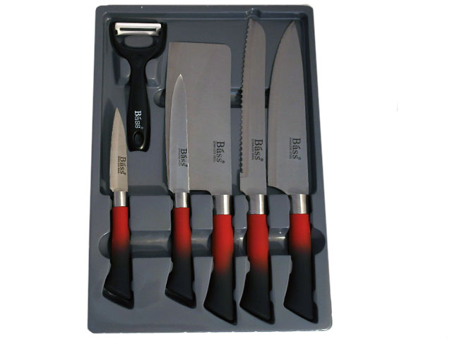 Комплект ножове BASS - 4 ножа, сатър и белачка