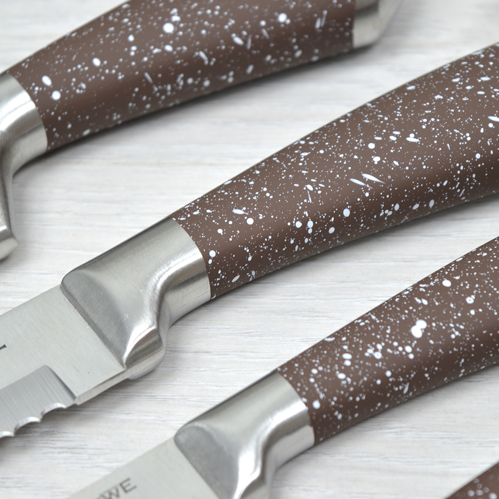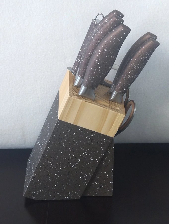 Комплект ножове на поставка "BASS" мрамор - Бордо