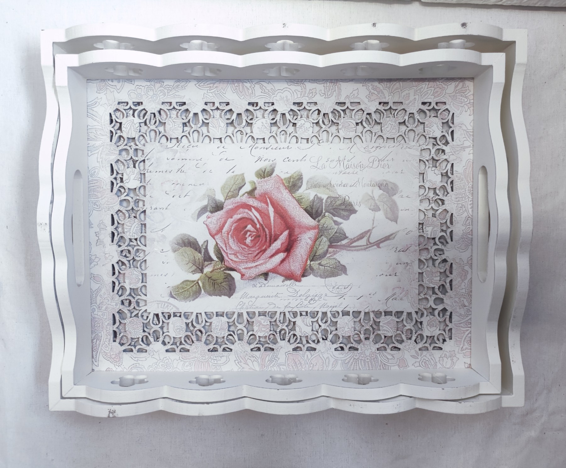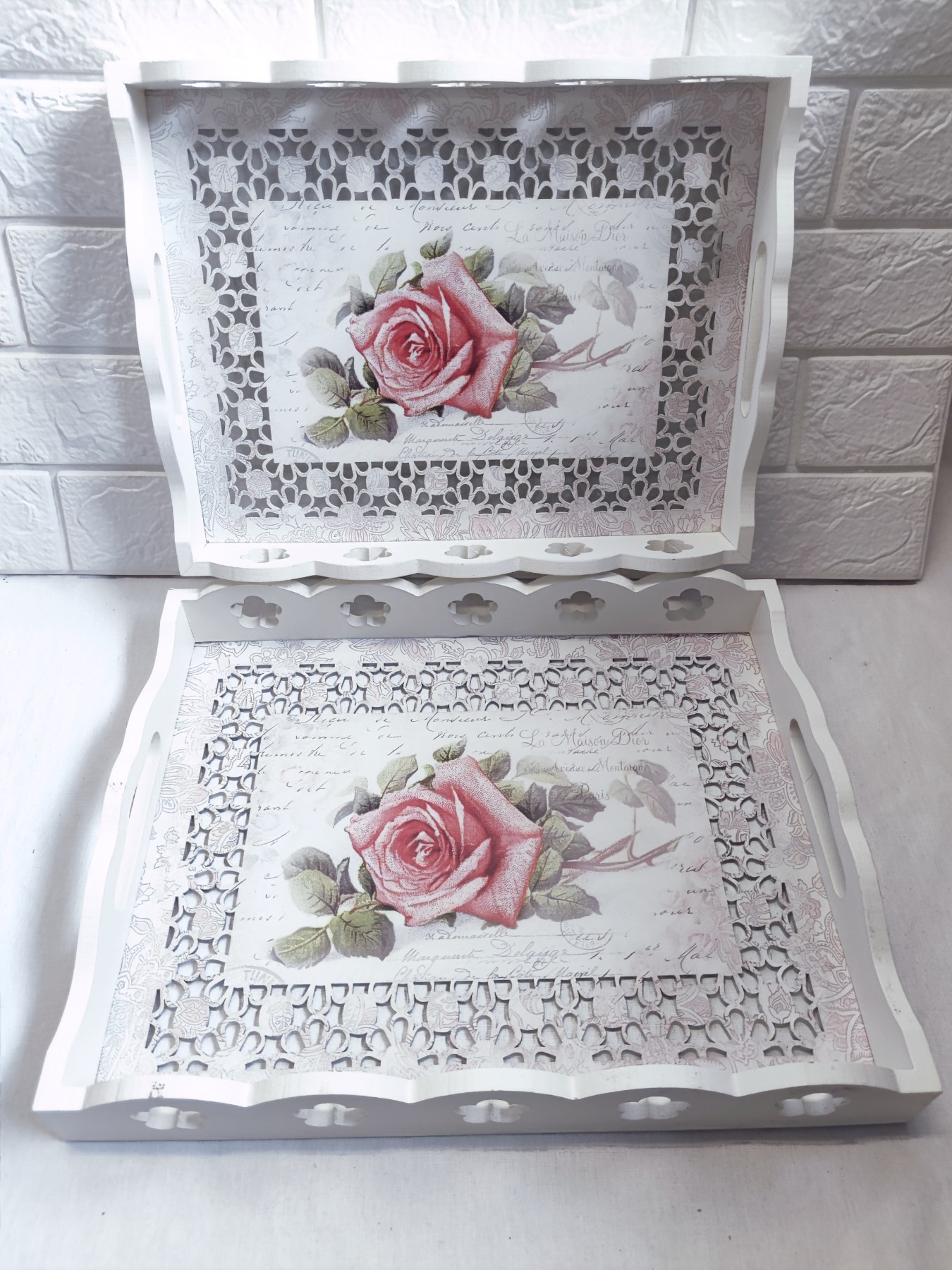Комплект от 2 дървени подноса с цветен принт "Роза"