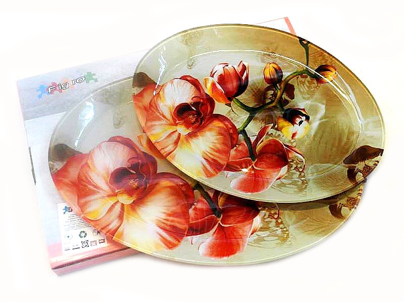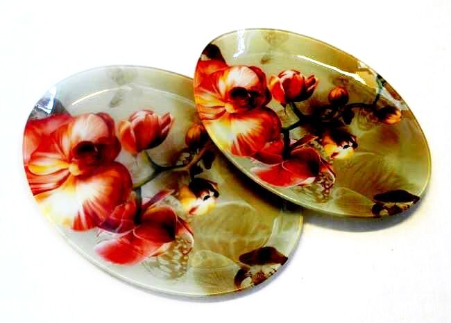 Комплект от 2 овални стъклени плата "Червени Орхидеи"