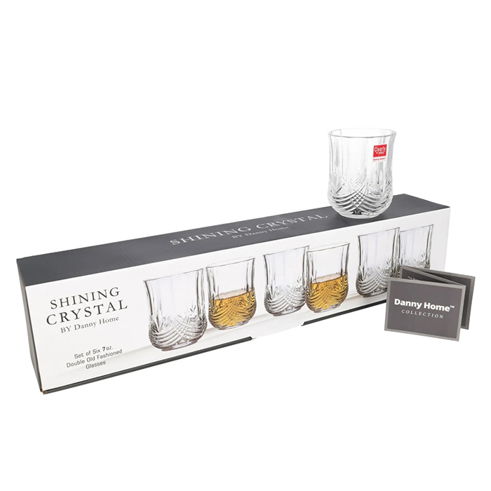 Насладете се на пълния вкус на любимата си напитка с този изискан комплект от 6 кристални чаши Danny Home, вдъхновени от класическия стил Double Old Fashion. Идеални за сервиране на уиски, коктейли или безалкохолни напитки, тези чаши комбинират блестящ дизайн и практичност.