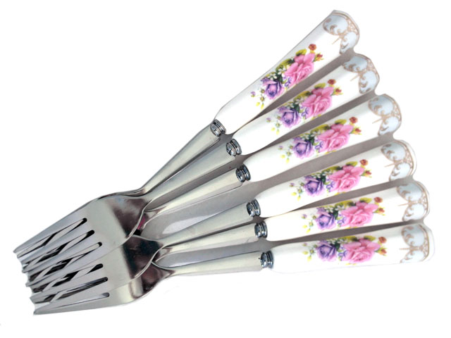 Комплект от шест вилици от неръждаема стомана, с керамични дръжки и с изискан и елегантен дизайн, с размер 20 см.
