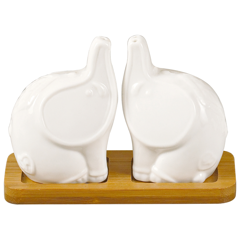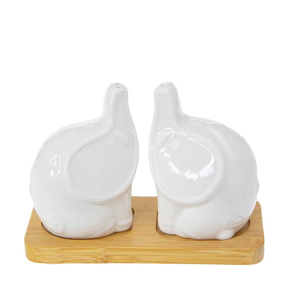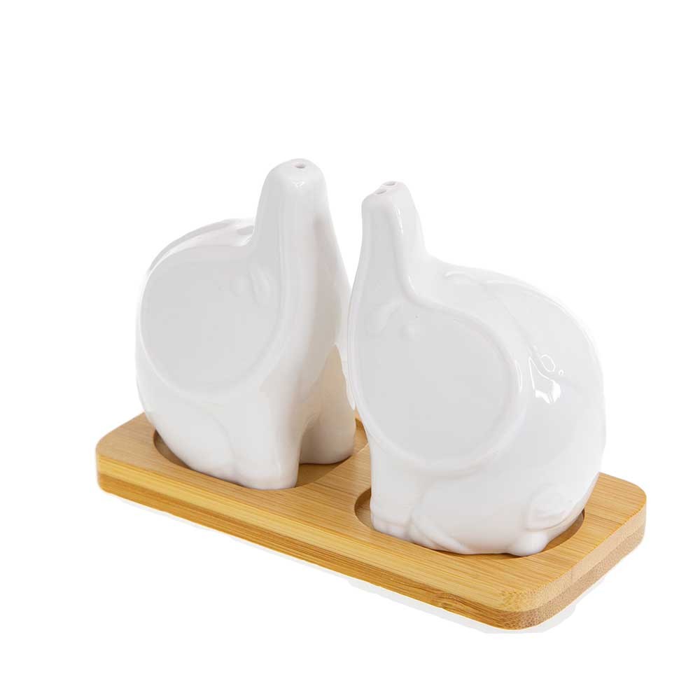 Комплект порцеланови солнички с бамбукова поставка "Слончета"