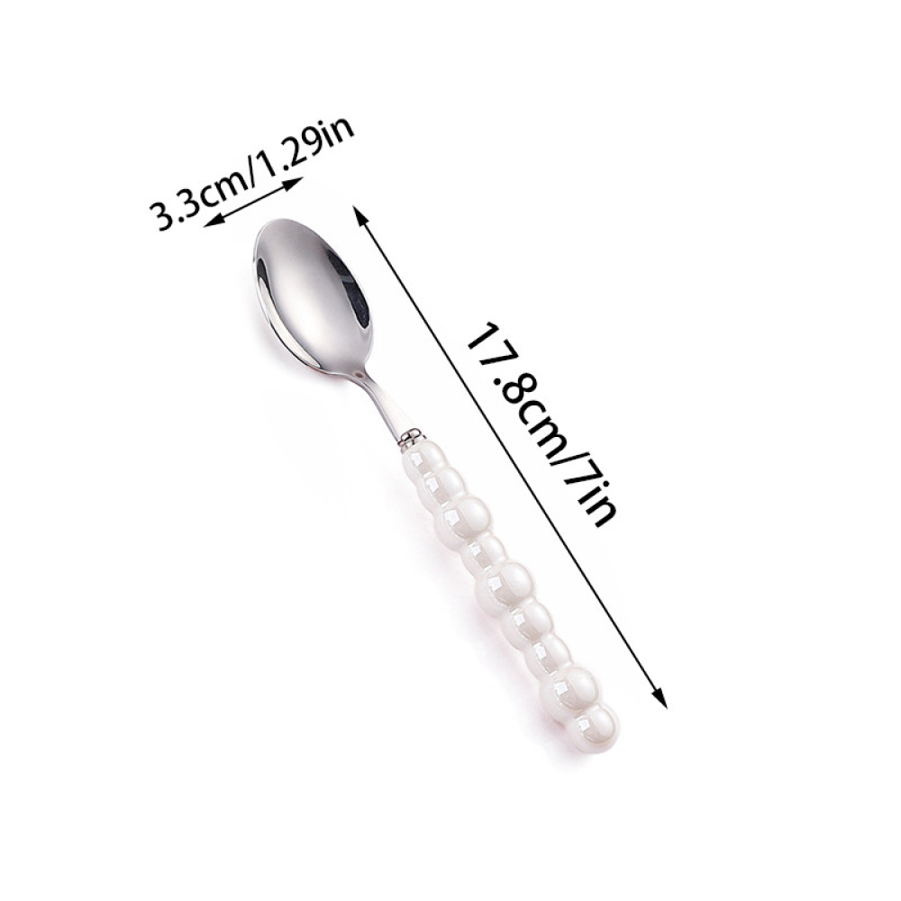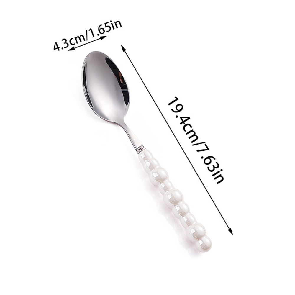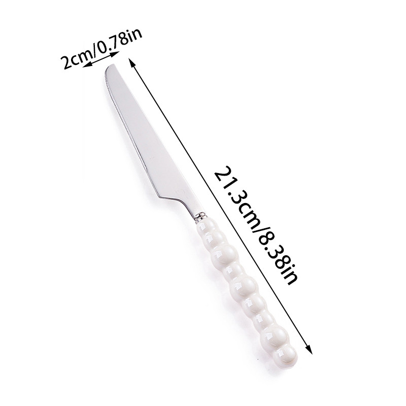 Съчетавайки здравина и елегантност, този комплект прибори от неръждаема стомана е подходящ както за ежедневна употреба, така и за специални поводи. Ергономичната форма и добре балансираното тегло осигуряват комфорт при хранене, а красивите перлени дръжки добавят стилен акцент към всяка маса.