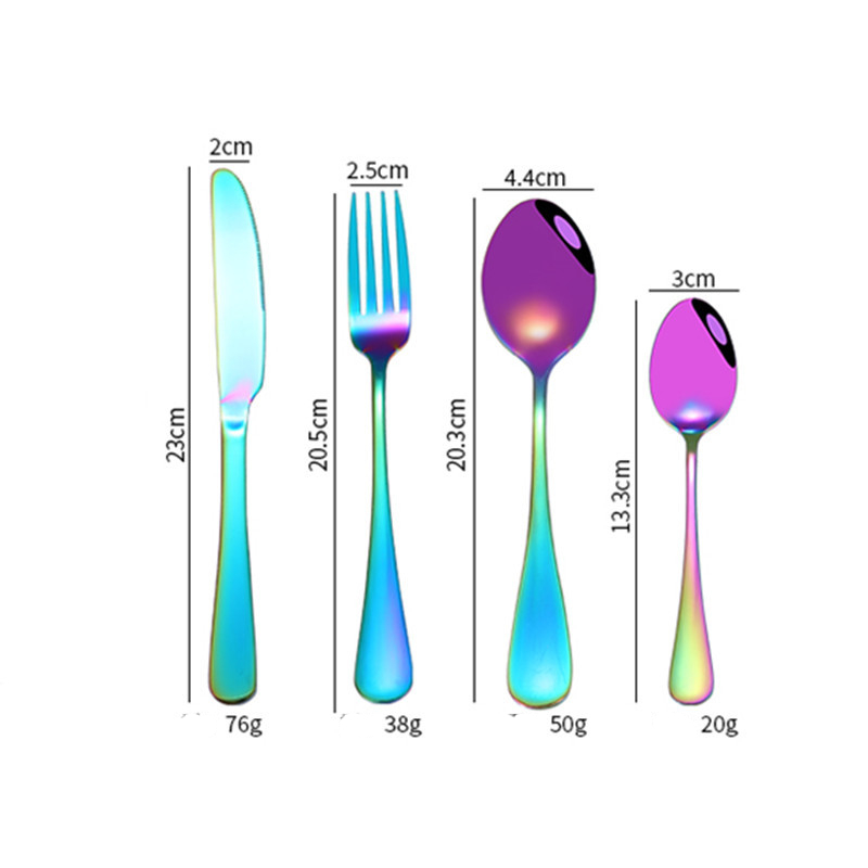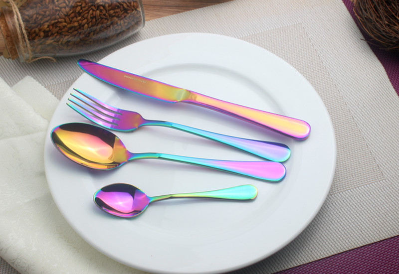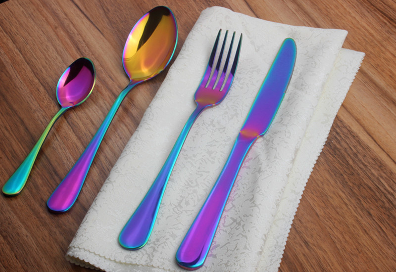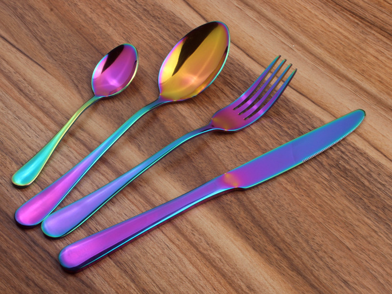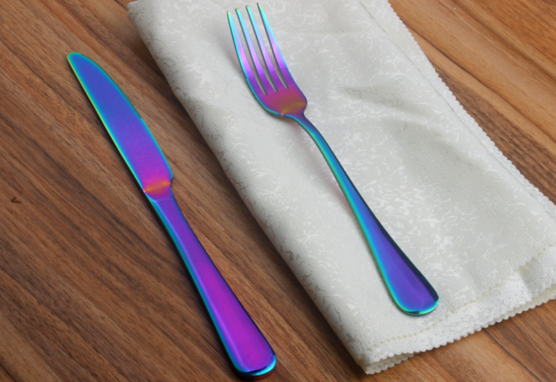 Комплектът прибори за хранене "Хамелеон" е перфектният избор за вашата кухня. Тези прибори са изработени от неръждаема стомана 1010 и са галванизирани, за да имат уникален цвят, който не е боядисан.