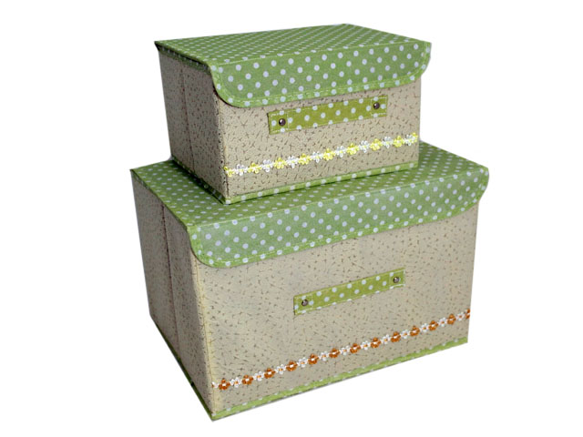 Комплектът включва две сгъваеми кутии с размери Н-24х37,5х25 см. и Н16х27х19 см. Кутиите са здрави, практични, с високо качество и с красив дизайн.