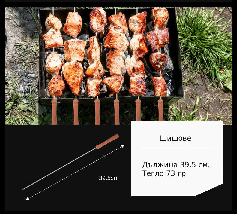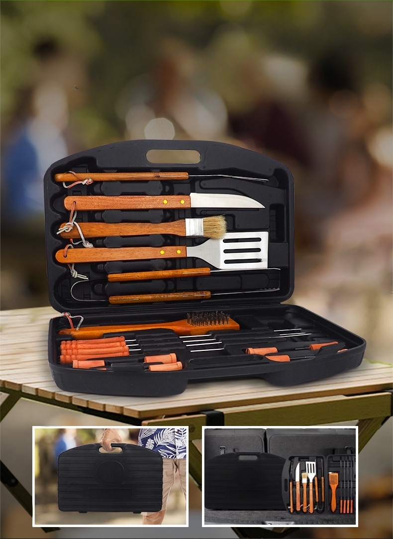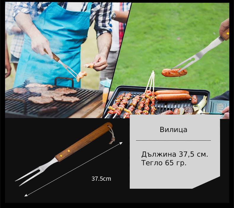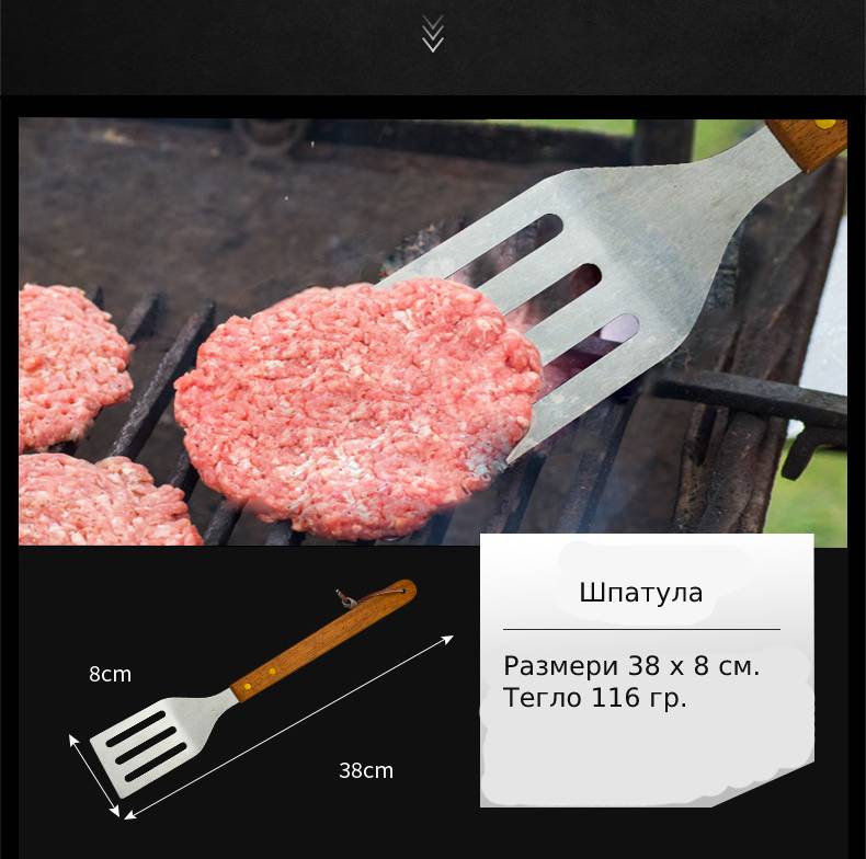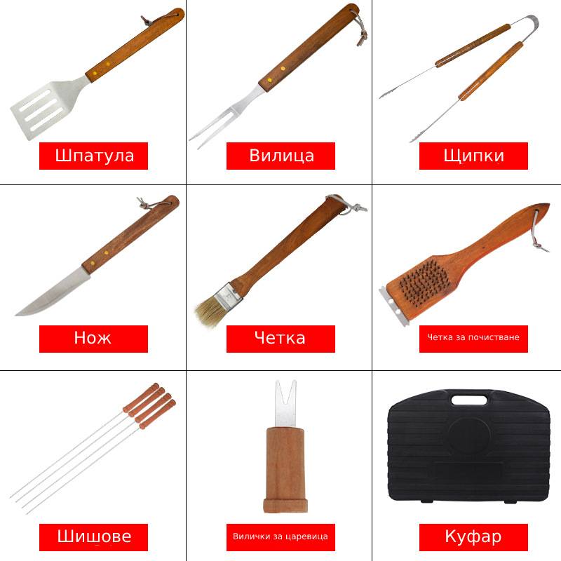 Този комплект не само предоставя необходимите инструменти за перфектно барбекю, но също така е и изключително практичен и удобен. С лек и компактен дизайн, лесен за носене, този комплект е идеален за барбекю и къмпинг приключения. Идеален и като подарък за любителите на гриловането.