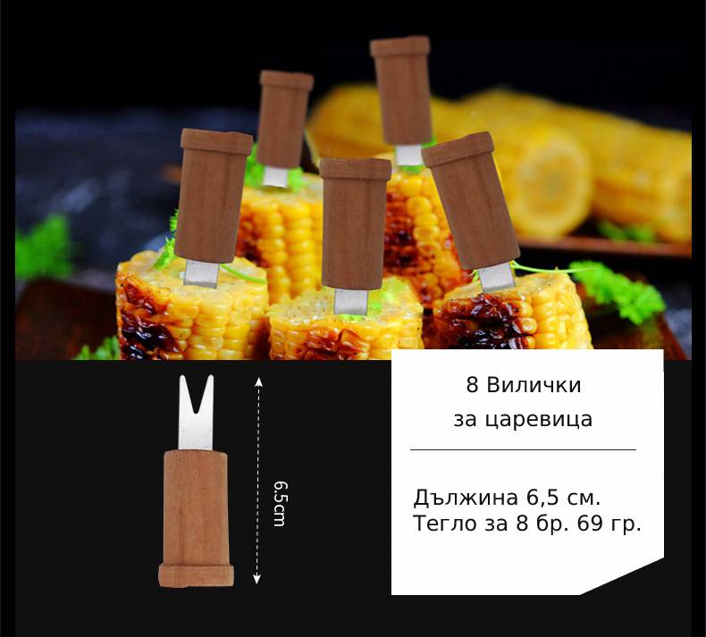 Всички прибори са изработени от висококачествена неръждаема стомана, с размери от 30 см. до 38 см., оборудвани с ергономични дървени дръжки за максимален комфорт при използване.