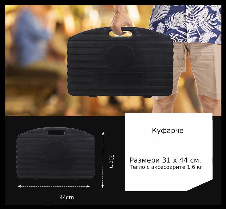 Подгответе се за невероятно барбекю изживяване с този комплект от 18 части, предоставен в практичен пластмасов куфар. Комплектът включва: