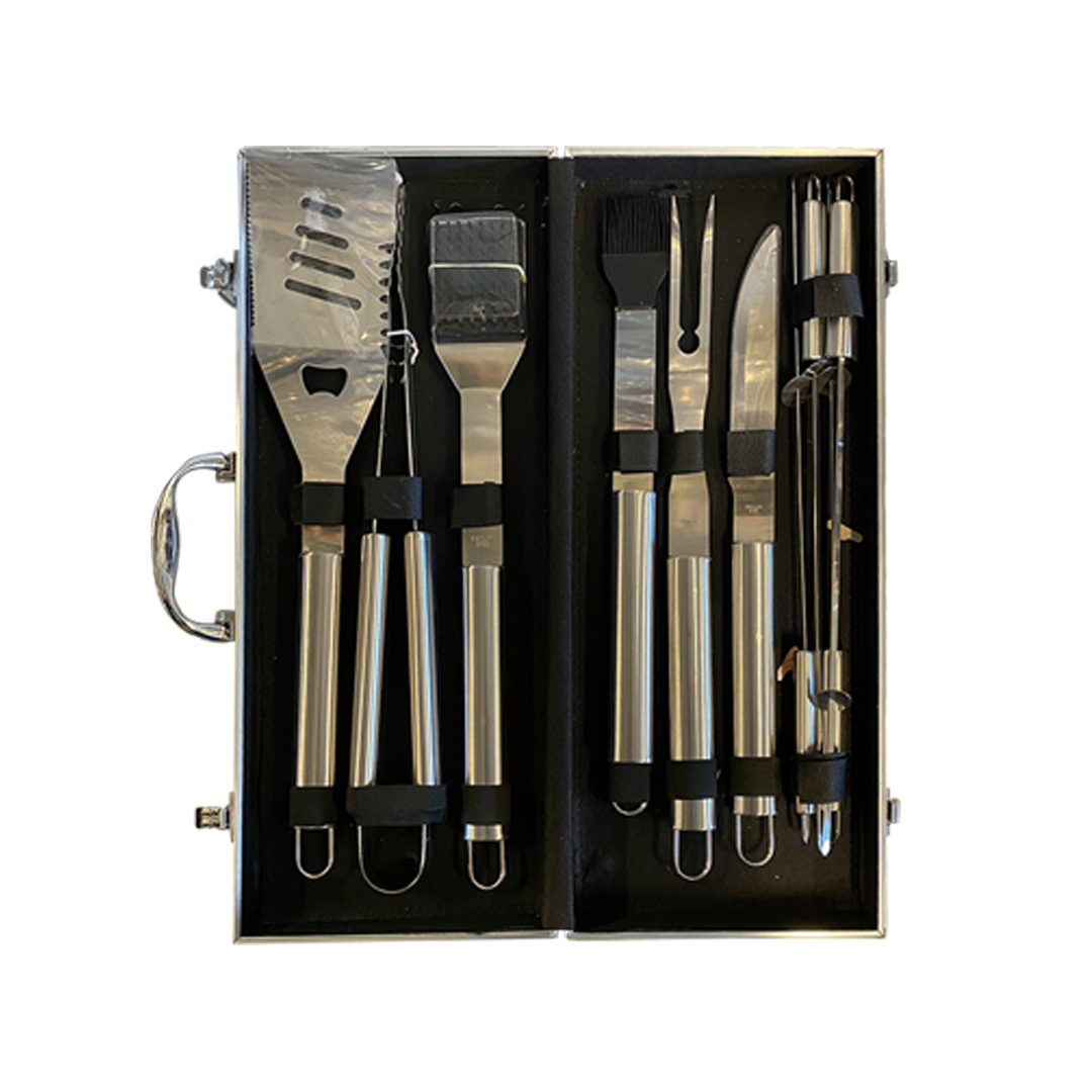 Комплектован в стилен метален куфар, този комплект не само че е практичен, но и представлява красив аксесоар с модерен дизайн. Подарете си или на вашите близки този елегантен комплект за барбекю - перфектният подарък за всеки любител на гриловането.