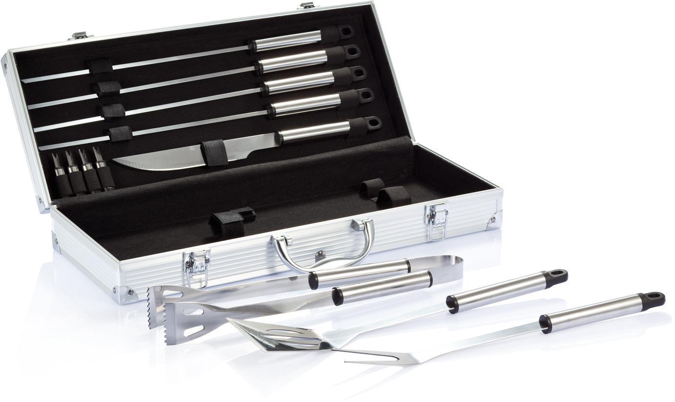 Комплект за барбекю от 12 части в метален куфар е идеалното решение за всеки любител на скарата, който търси луксозни и практични барбекю аксесоари. Този комплект съчетава стил и функционалност, подходящ е като подарък за мъж и е отличен избор за специални поводи като рожден ден или семейно парти.