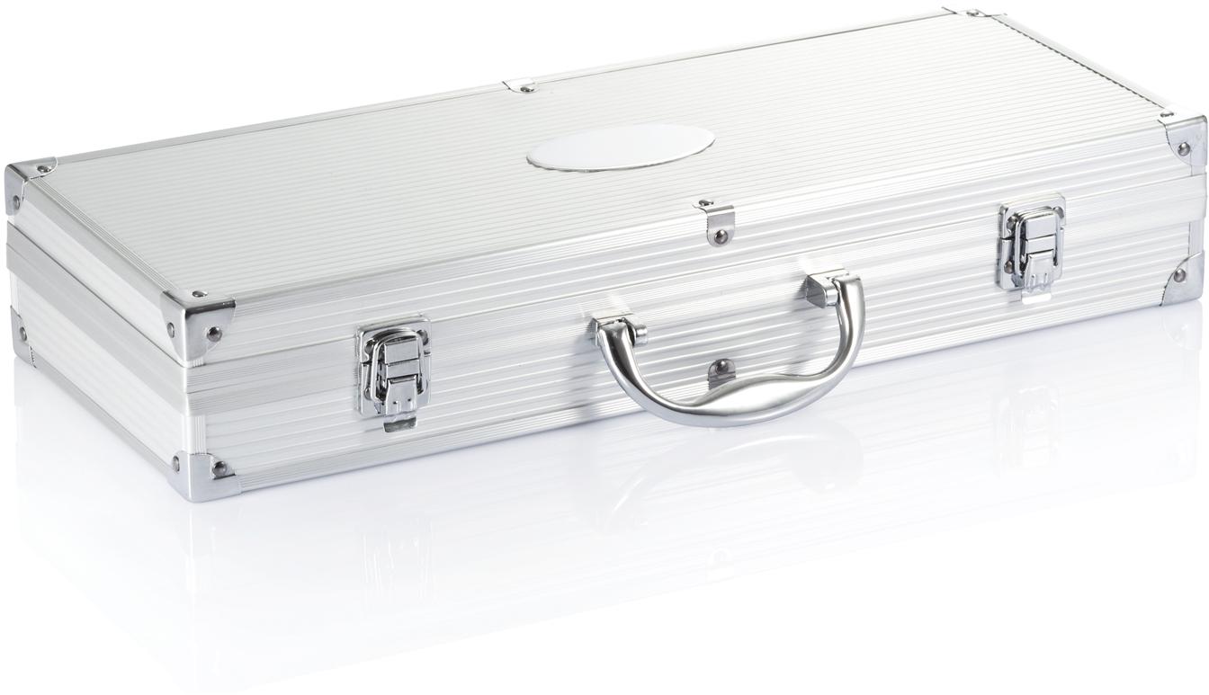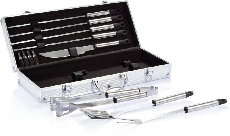 Добавете този комплект прибори за барбекю към своята колекция или го подарете като луксозен и функционален подарък за рожден ден, който ще бъде оценен от всеки любител на скарата.