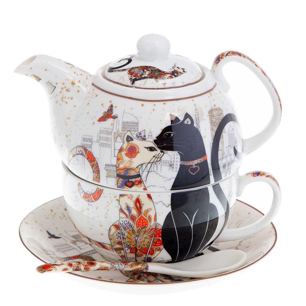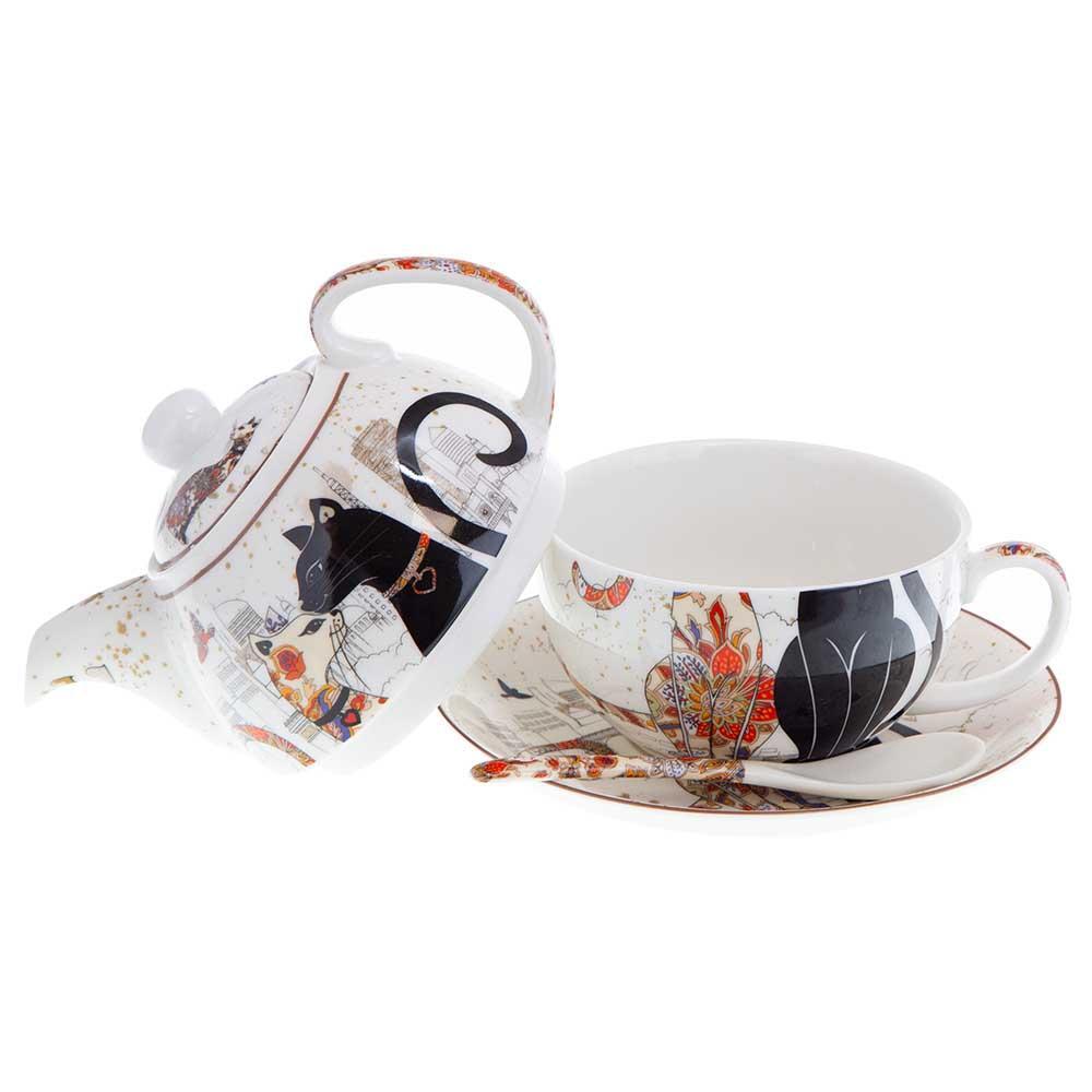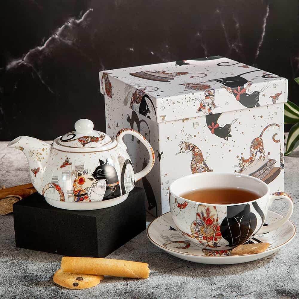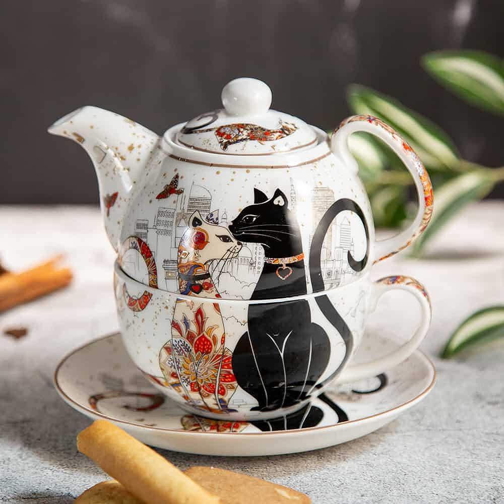 Комплект за чай - чайник, чаша и чинийка "Котките"