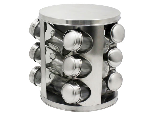 Той има 12 бр. стъклени бурканчета с капачки от неръждаема стомана/