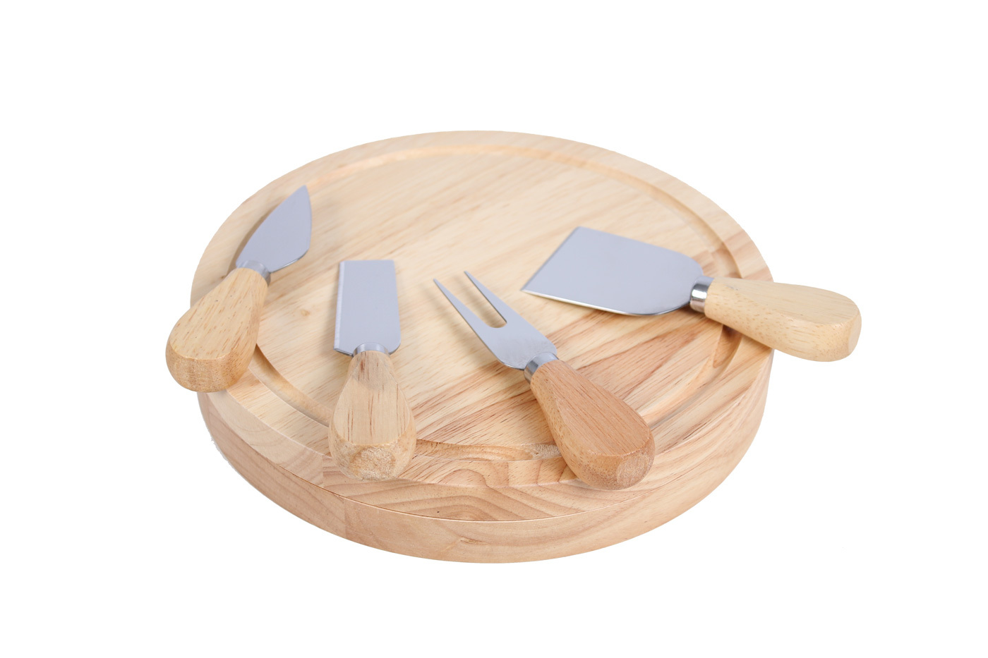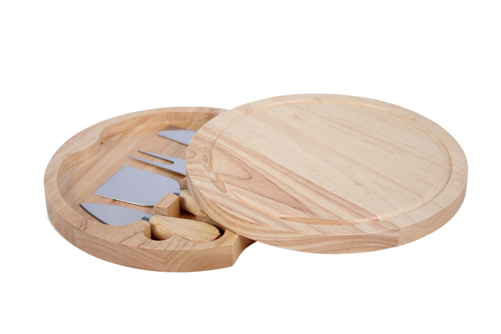 Той съдържа дъска, която е от 2 части и в нея се събират 4 ножа за сирена - нож за масло, шпатула за твърди сирена, нож за меки сирена и вилица.
