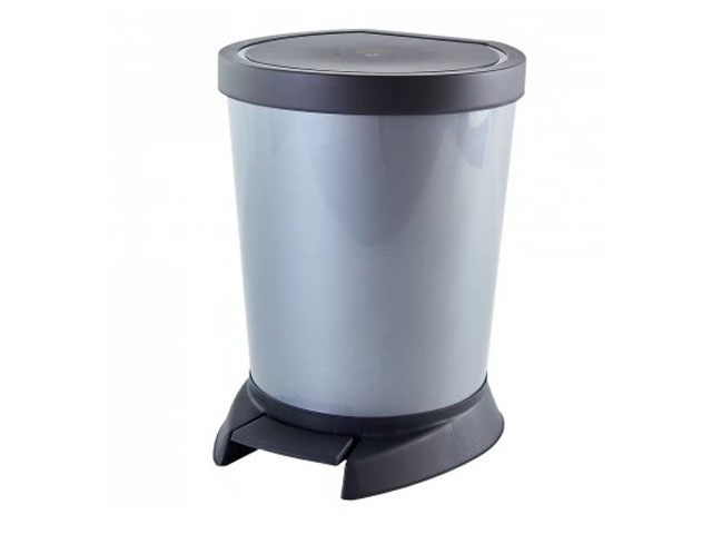 Удобен и практичен кош за отпадъци с педал и с капак, с размер 28х27х36 см. и с обем 10 л., изработен от висококачествена пластмаса в сив цвят. Разполага с добре прилепващ капак, който предотвратява разпространението на миризми.