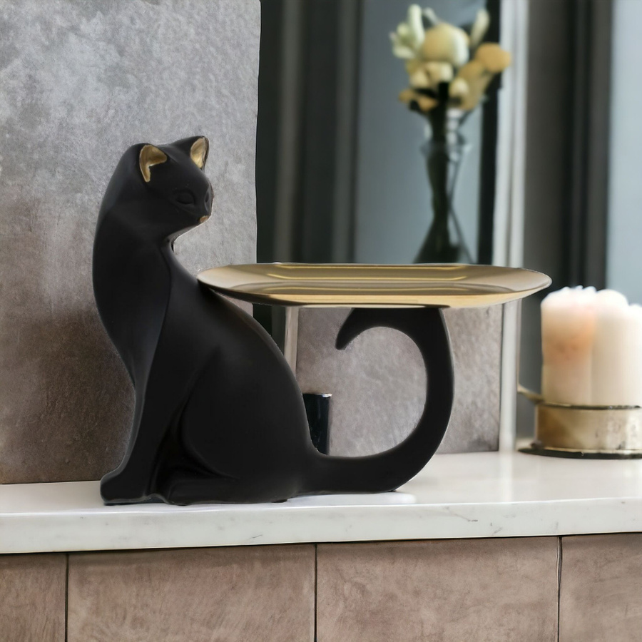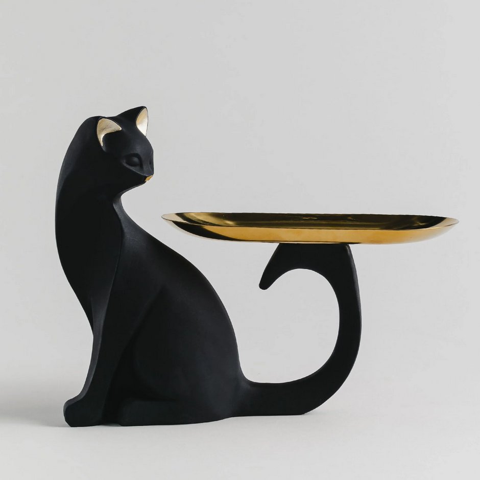 Тя е във формата на стилизирана котка с табла за дребни предмети.