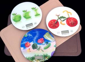 Стъклен домакински кантар за измерване теглото на продукти до 5 кг.
