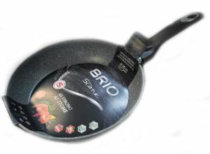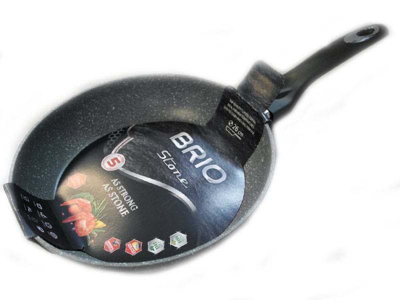 Висококачествен и здрав тиган BRIO Stoneс с кръгла форма, с размер 24 см. и с петслойно незалепващо покритие, подсилено с минерални частици.