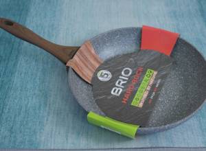 Висококачествен и здрав тиган BRIO Stoneс с кръгла форма, с размер 28 см. и с петслойно незалепващо покритие, подсилено с минерални частици.