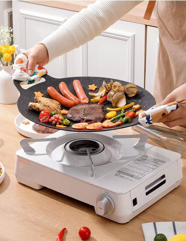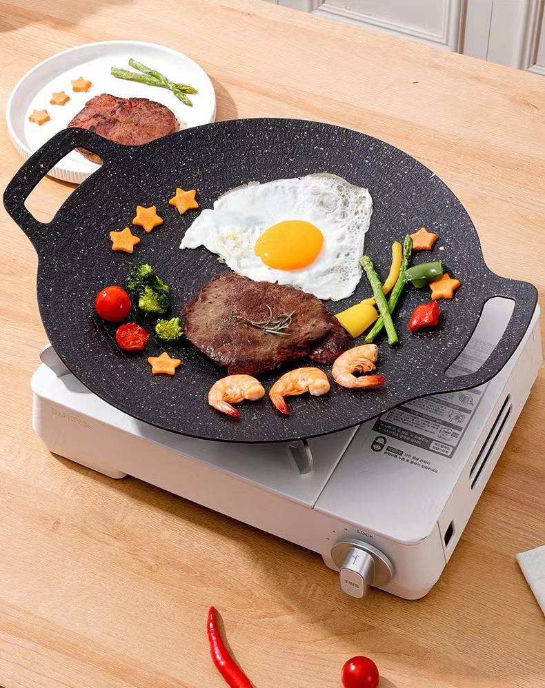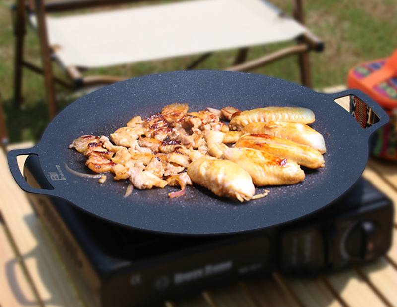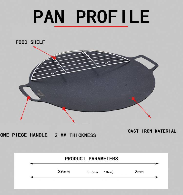 Ако сте любител на откритото готвене и търсите качествен тиган, който да ви помогне да приготвите вкусни ястия, този кръгъл плосък тиган за печене с две дръжки е идеалното решение за вас.