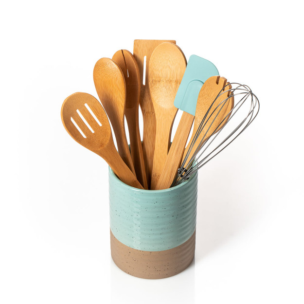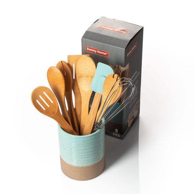 Изберете кухненски комплект от 8 части с поставка и съчетайте стил, качество и удобство в едно.