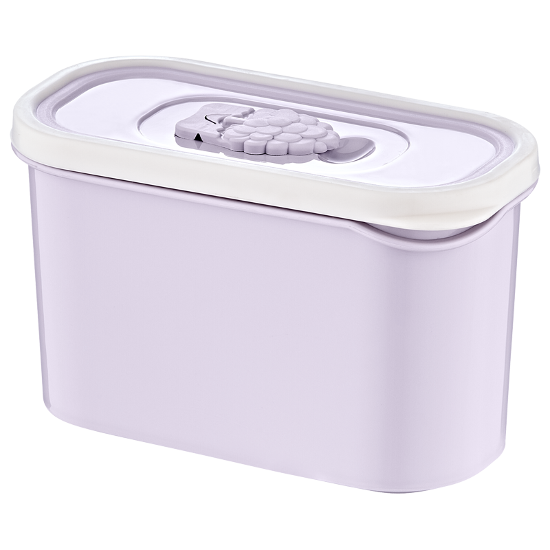 Удобна и практична херметическа кутия за съхранение на храна, изработена от пластмаса и силикон, с обем 1 л., с капак. Здрава, хигиенична, без съдържание на BPA (Бисфенол А). Запазва храната свежа и прясна. Може да се използва в микровълнова фурна (120 C) и във фризер (-40 С). Лесно се почиства, може да се мие в съдомиялна машина. Предлага се в различни цветове.