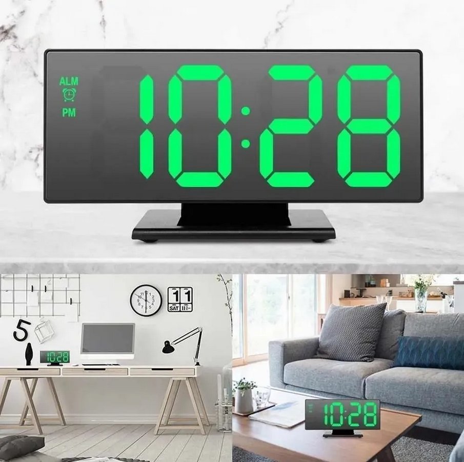 Съвременен LED часовник с функция на будилник със светодиодно осветление.