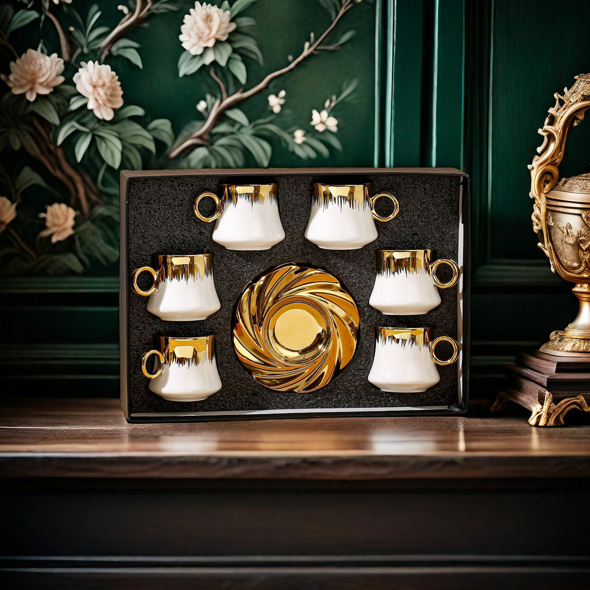 Луксозен керамичен сервиз за кафе в подаръчна опаковка