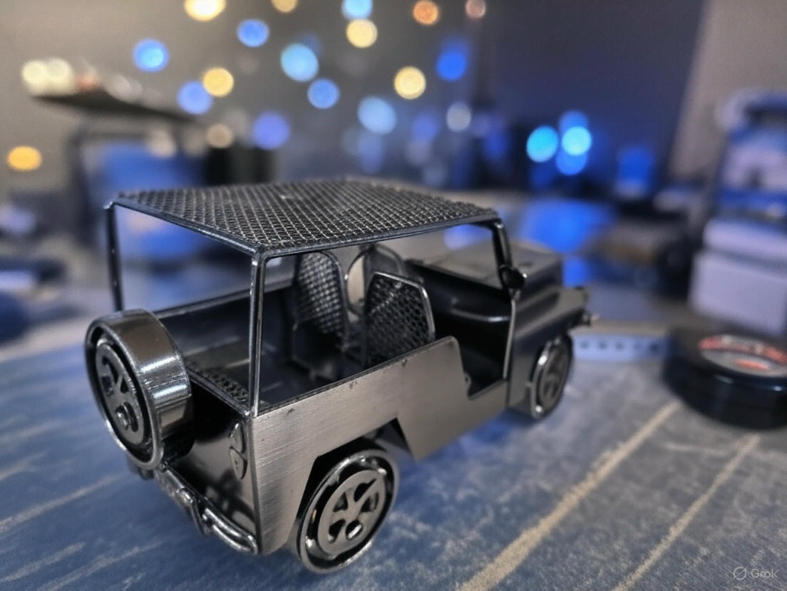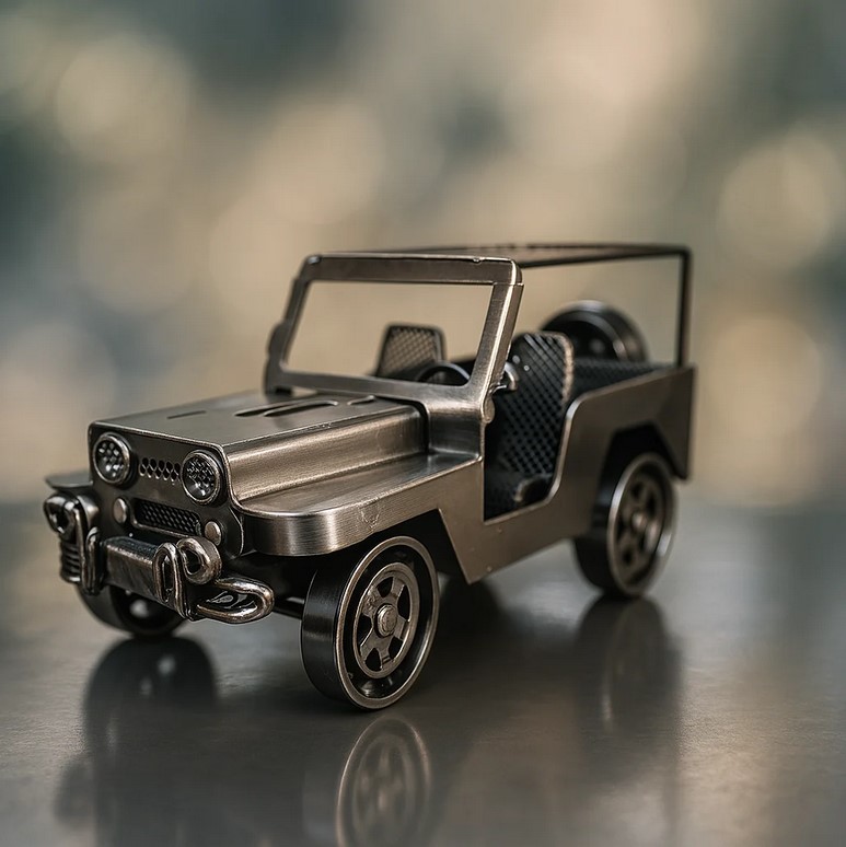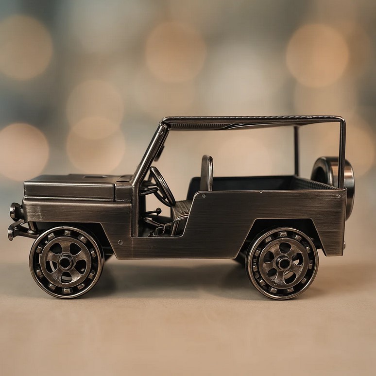 Метален военен джип с мрежест покрив