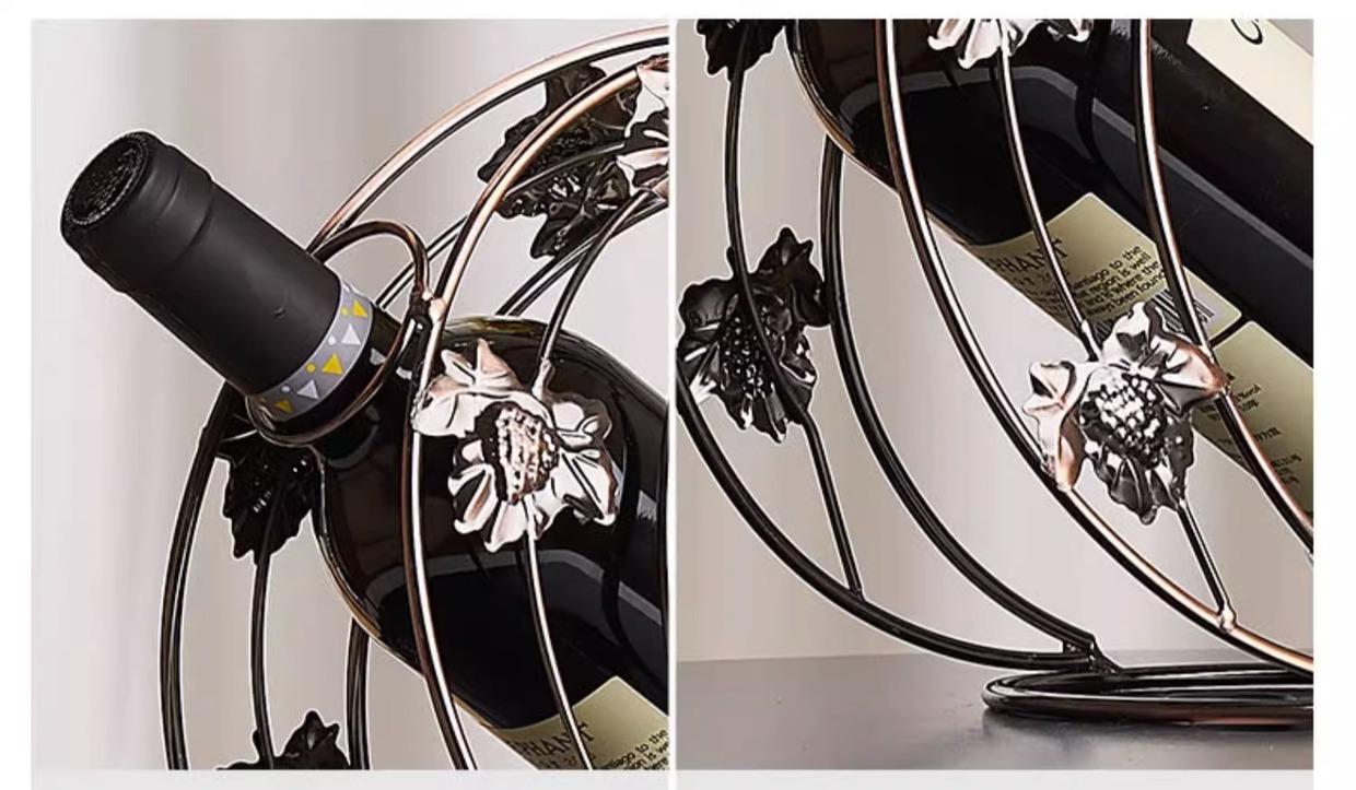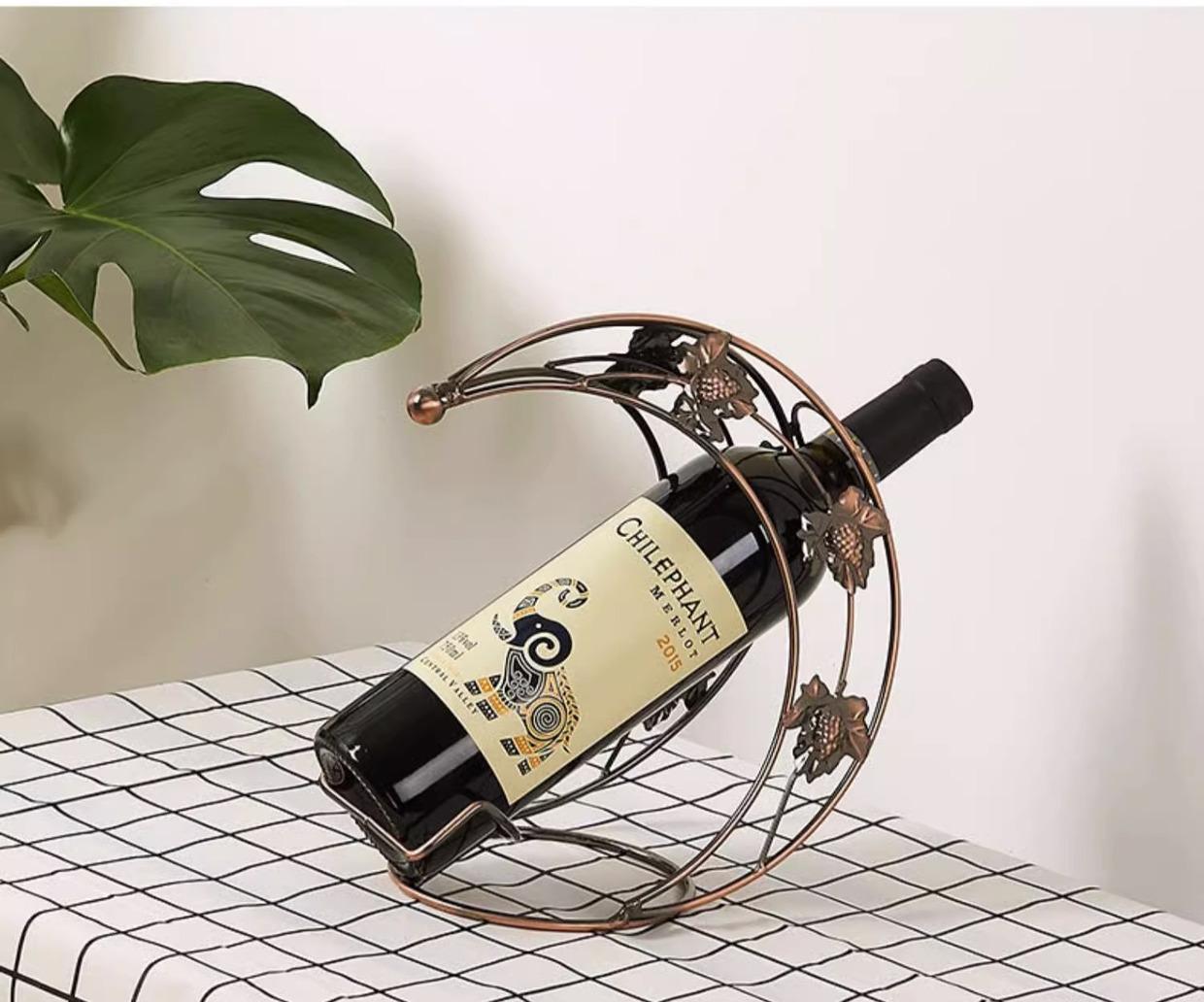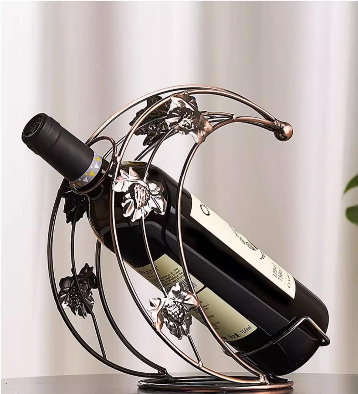 Метална поставка за бутилка вино, изработена от метал.