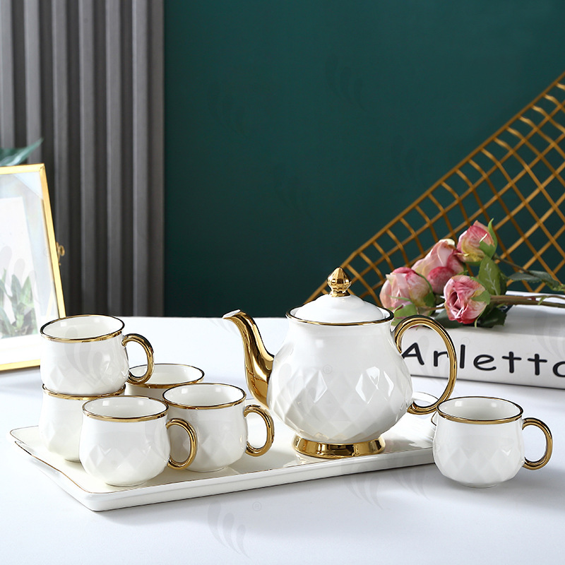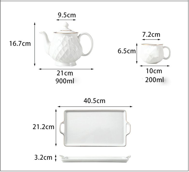Модерен керамичен сервиз за чай в бяло с поднос