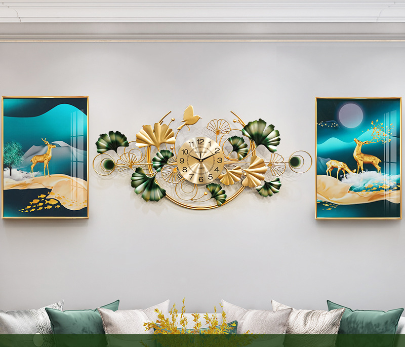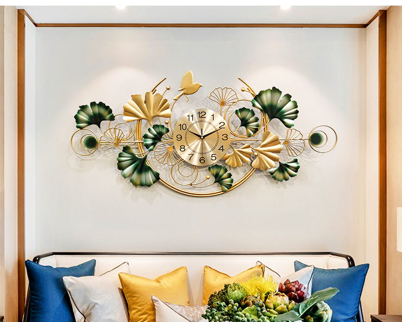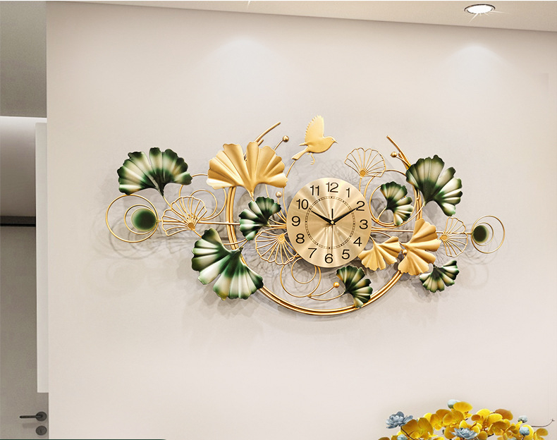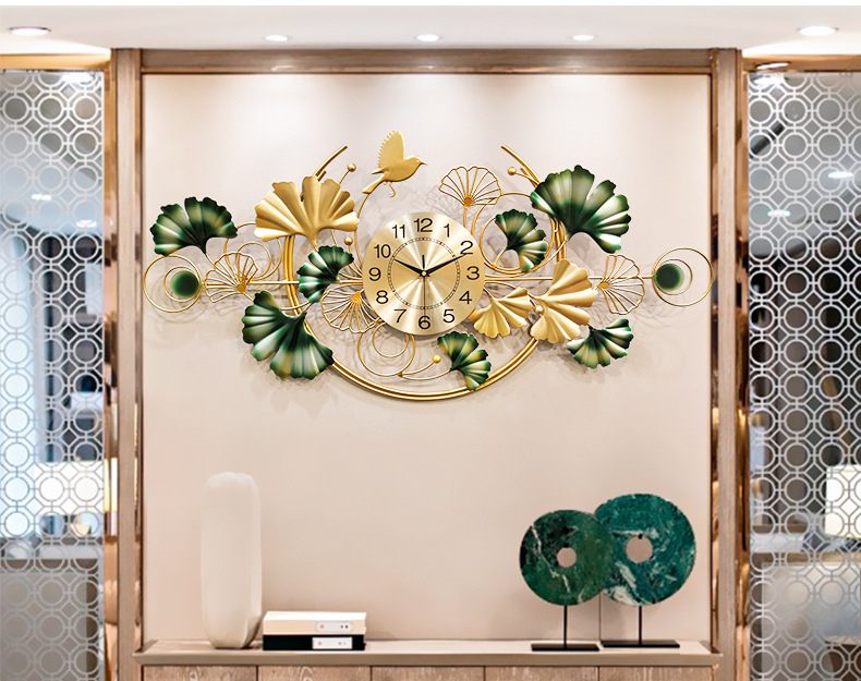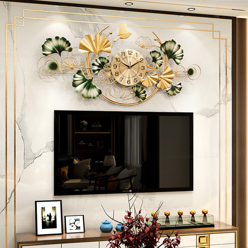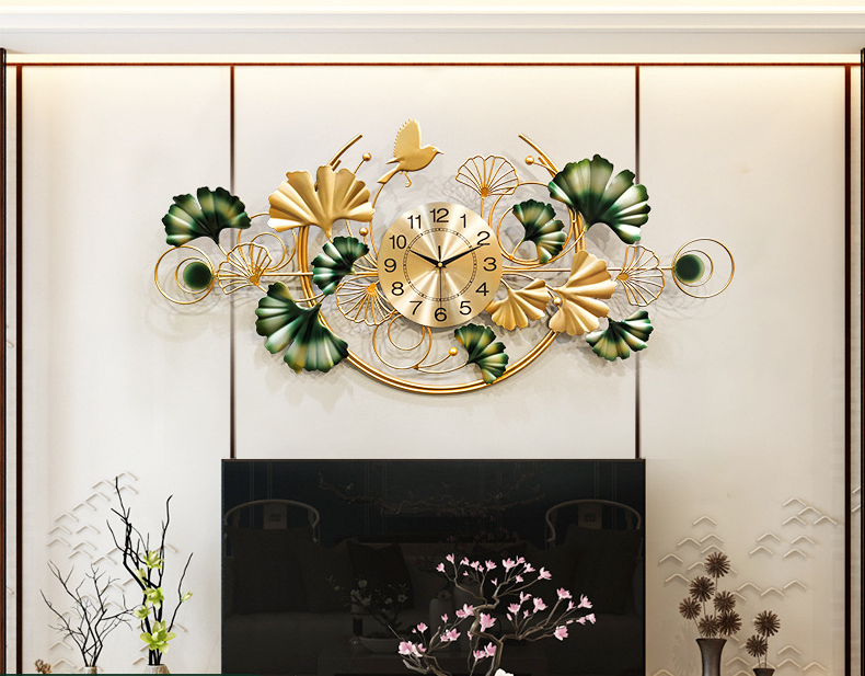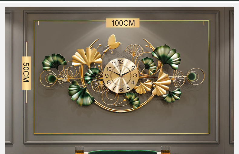 Модерен Стенен Дизайнерски Часовник "Зелени Листа" 100 х 50 см