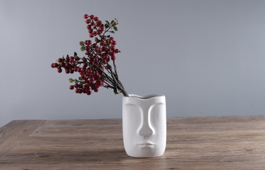 Модерната Бяла Керамична Ваза "Лице" е перфектният акцент за вашия интериор. Подчертайте своята индивидуалност и творчески подход към декорацията с този изключителен дизайнерски елемент.