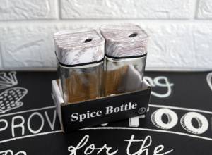 Има солница, пеперница с вместимост 35 мл. и оливерник и съд за оцет с вместимост 160 мл., на метална поставка от неръждаема стомана.