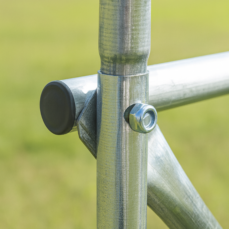 - Конструкция: Поцинковани стоманени тръби Ø25 мм с дебелина 0.7 мм, подсилени с напречни греди и стабилизиращи тръби
