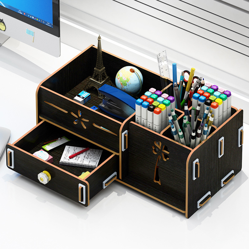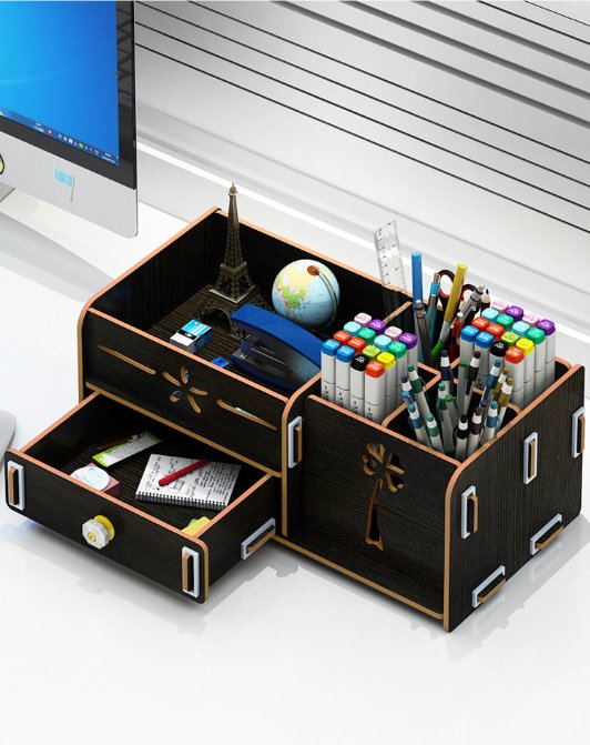 Чекмеджето с размери 14.5 х 11.5 см предоставя практично пространство за съхранение на дребни предмети, а 4-те гнезда за моливи, химикали и маркери гарантират организираност на вашето бюро.