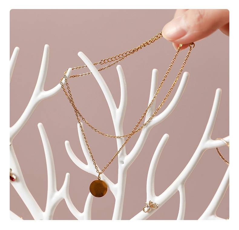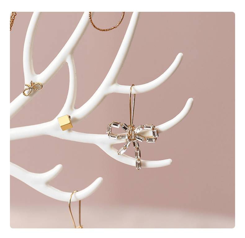 - Декоративен дизайн с елен, предоставящ място за окачване на пръстени, обеци, синджирчета и гривни;