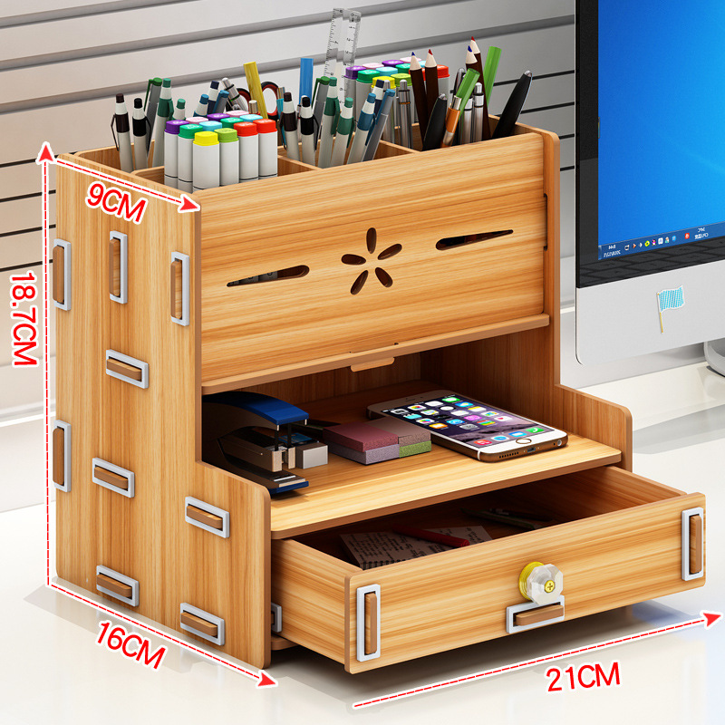 С този органайзер ще въведете ред и лесна достъпност на вашите офис материали. Чекмеджето за дребни предмети, рафтчето и 6-те гнезда предоставят практичност и организация. Преобразете своето работно пространство с лекота.