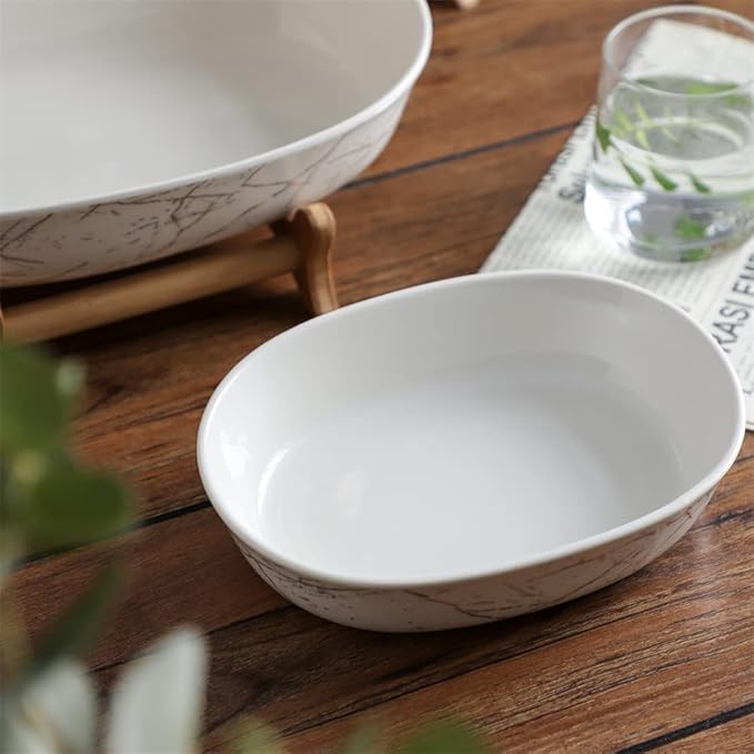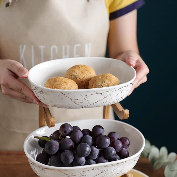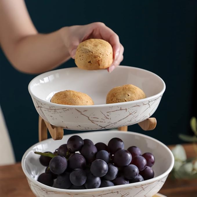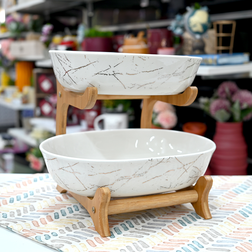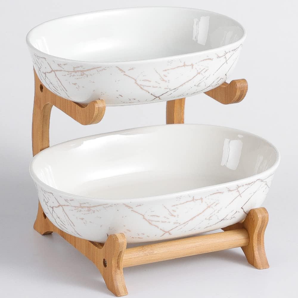 2-степенен овален сервиз с бамбукова стойка – стилно и компактно сервиране